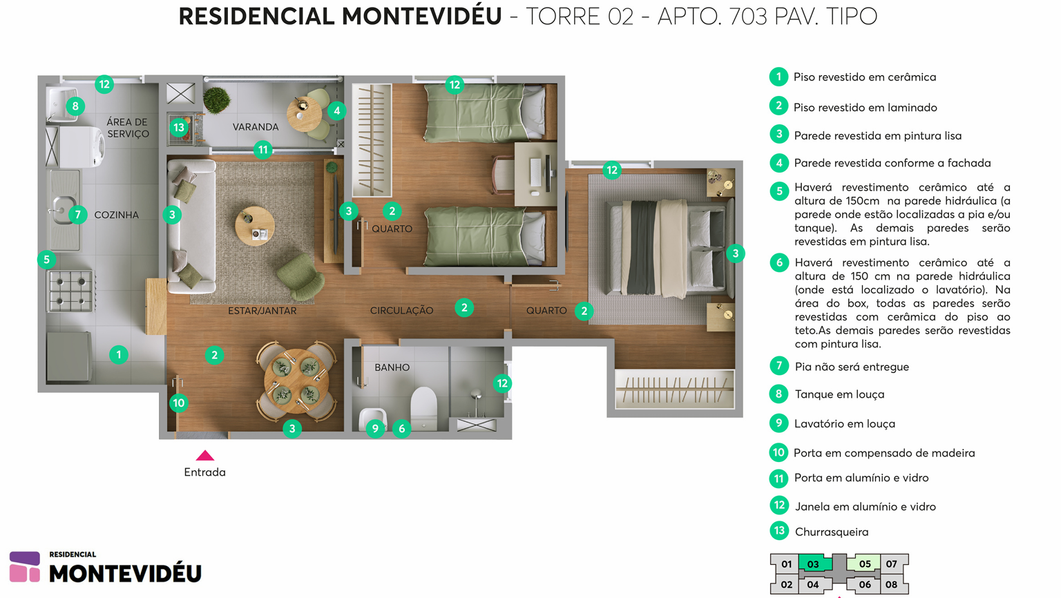 Mais que um apartamento, o novo jeito MRV de viver. O Martini oferece: lazer equipado, coleta seletiva, sistema de segurança, portas especiais, laminado na sala e quartos e muito mais.